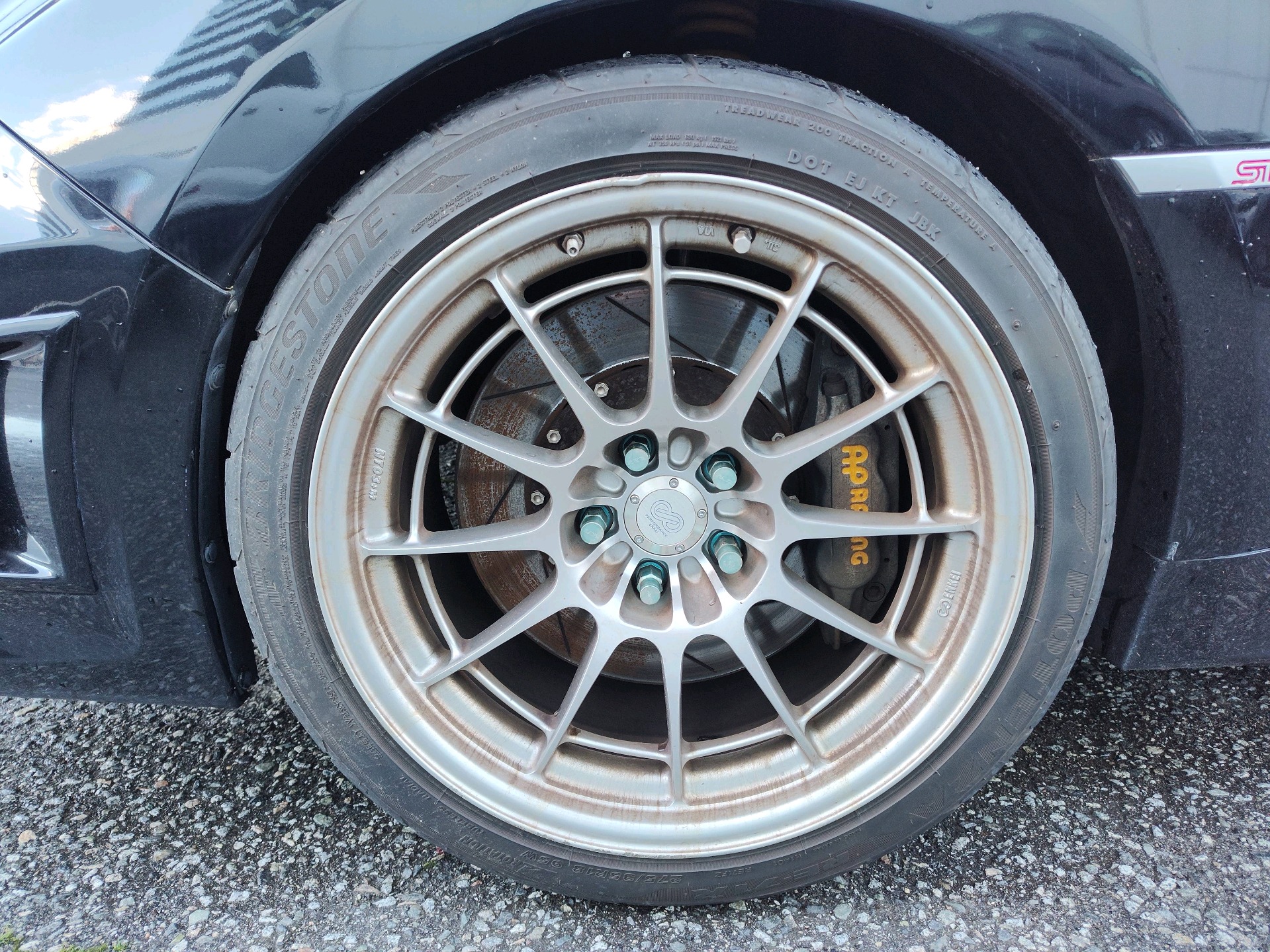 18" x 8.5" 14-spoke gunmetal coated cast aluminum alloy wheels -inc: STI centre caps