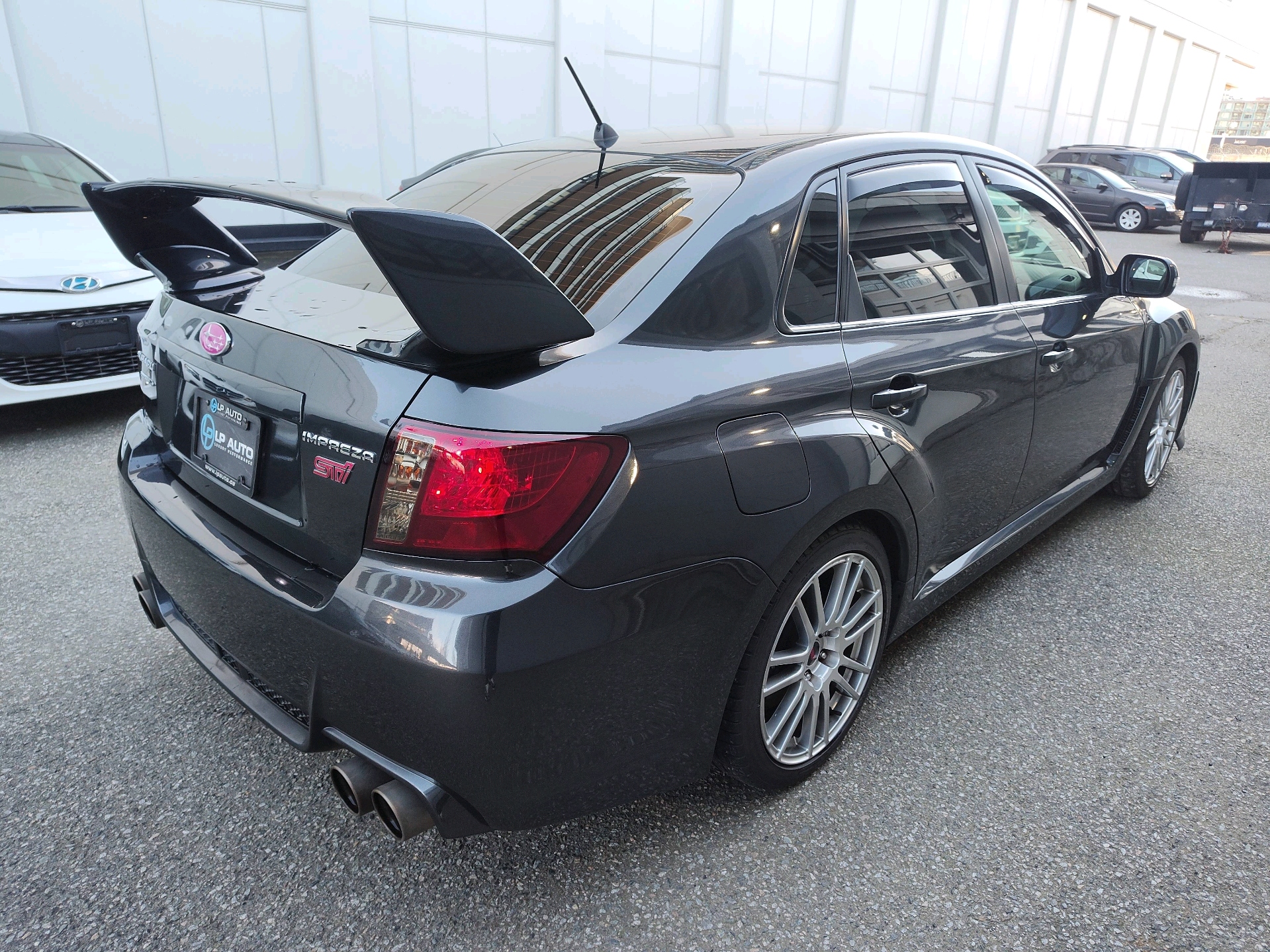 This is a very low km Subaru STI, with only 83,468 km. The only mod this vehicle has is an exhaust. So it has been kept in good shape, not modified, in mint condition.
