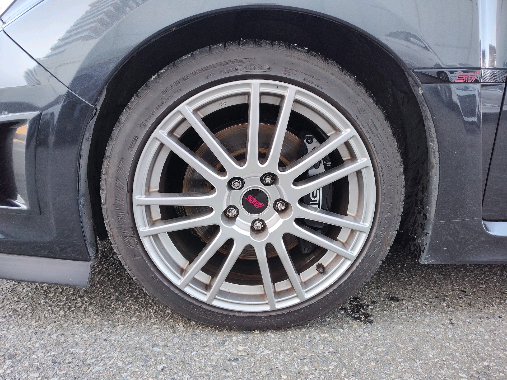 18" x 8.5" 14-spoke high-lustre finish cast aluminum alloy wheels -inc: STI centre caps